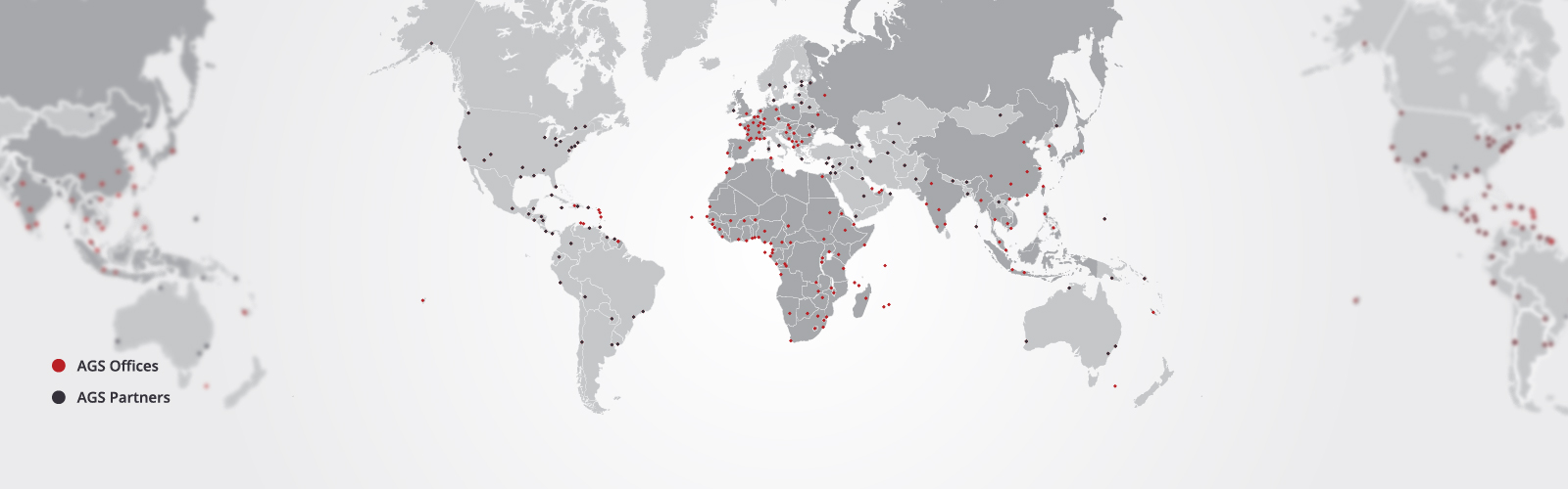 AGS is al 49 jaar aan het groeien en heeft zich jaar na jaar wereldwijd uitgebreid. Het bedrijf is overal ter wereld aanwezig, in Afrika, Europa, Azië, de Franse gebieden overzee en in West-Indië. AGS telt 147 locaties in 100 landen en beschikt daarmee over een van de grootste netwerken in de internationale verhuissector.
